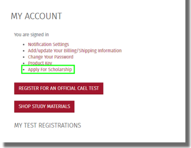 Eligible applicants will be able to apply directly through their CAEL account. If you have received a score of 60 or higher, log into your CAEL account to access the application form as seen on the image below!